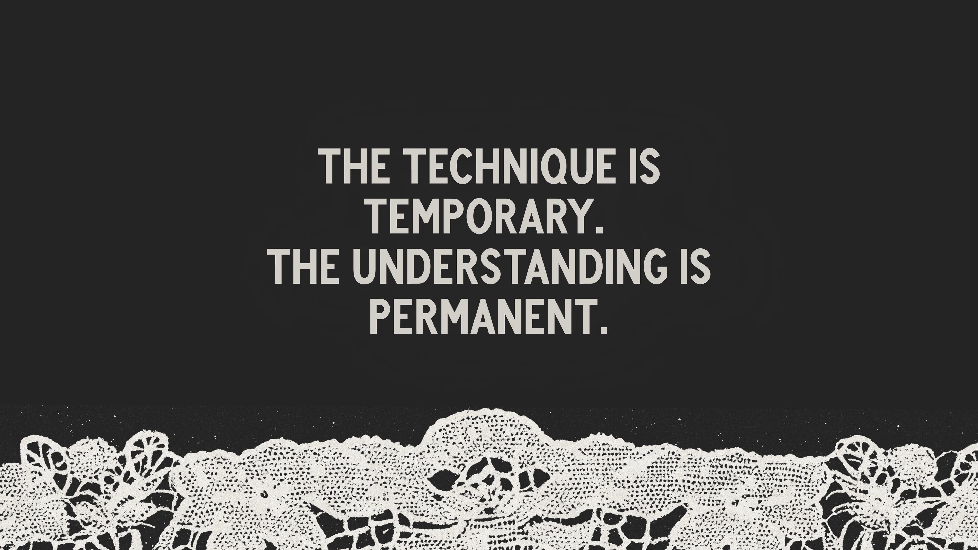 The techniques we learn are temporary. The understanding they create is permanent.